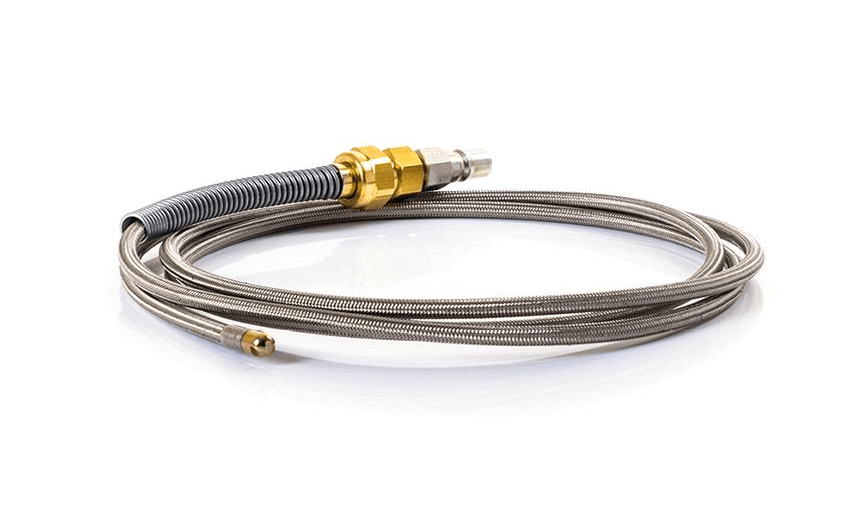 For use with high pressure airless equipment. This flexible wand is for application of low and medium viscosity products in narrow box sections with complicated shape. The 360 deg spray pattern provides good coverage and well controlled film.
